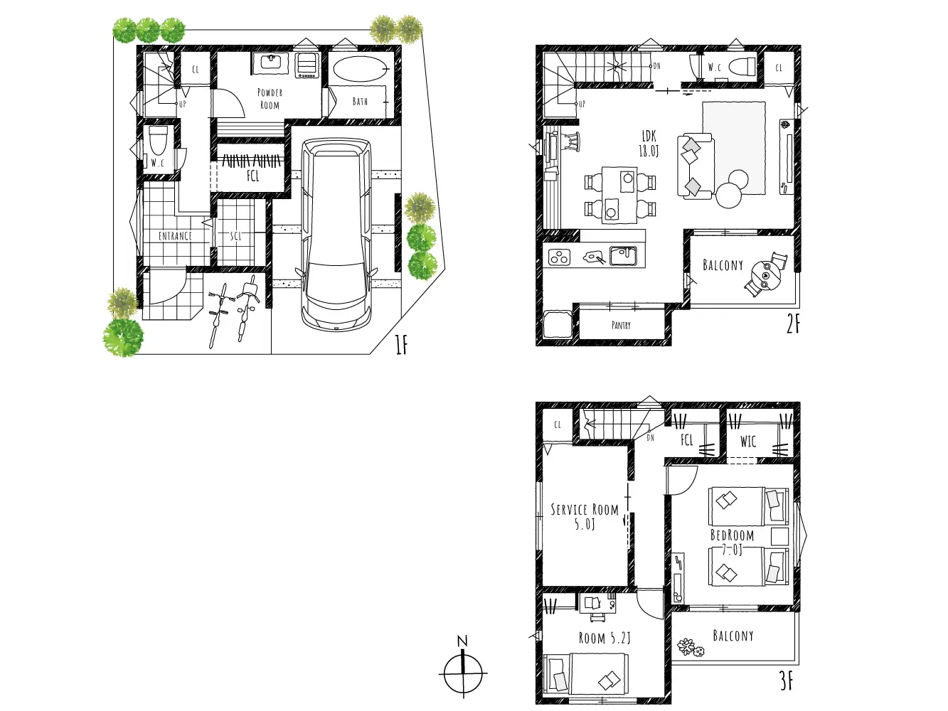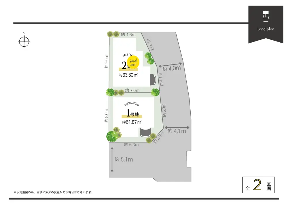 70.00㎡(7号地・9〜12号地、16号地、19号地〜21号地)~79.75㎡(14号地)