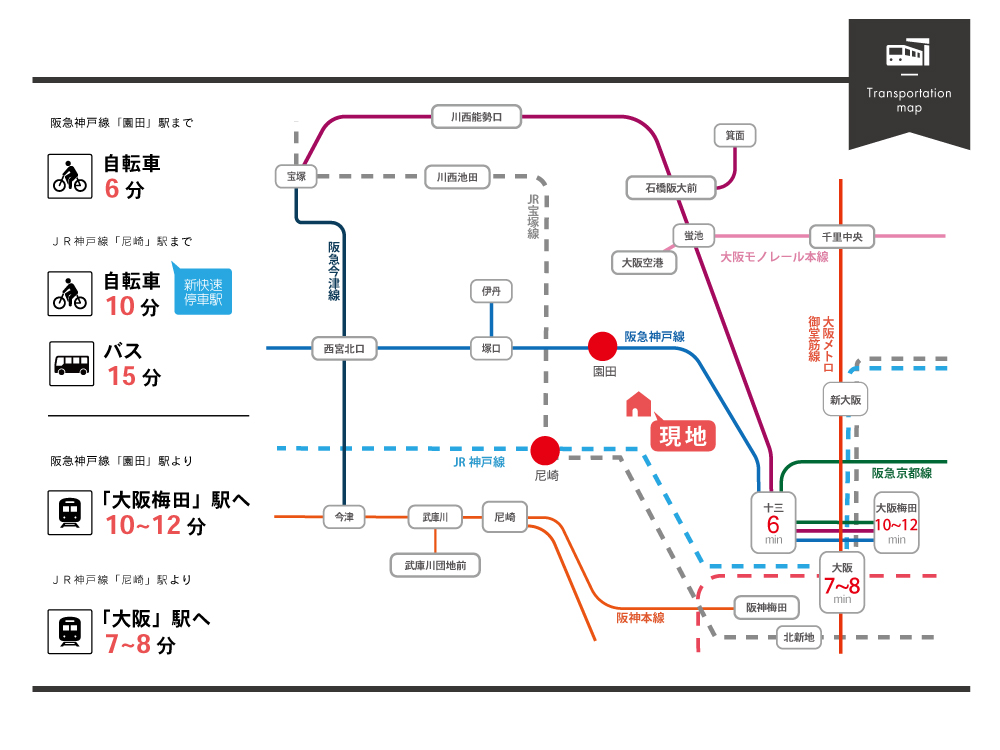 | 主要交通 | 阪急神戸線「園田」駅 自転車6分(1300m) |