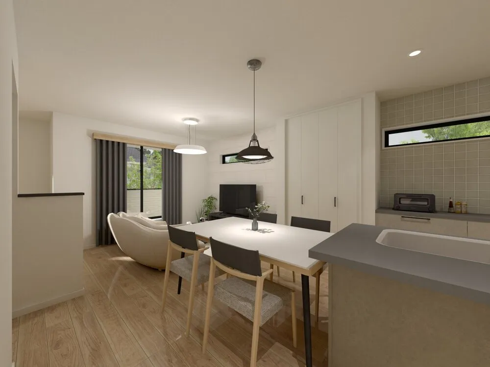 南向きのため、たくさんの光を取り込める明るいお家です!周辺には、コストコやイオンスタイル、キューズモールなどお買い物ができる施設がたくさんある、家族みんなにうれしい立地です!