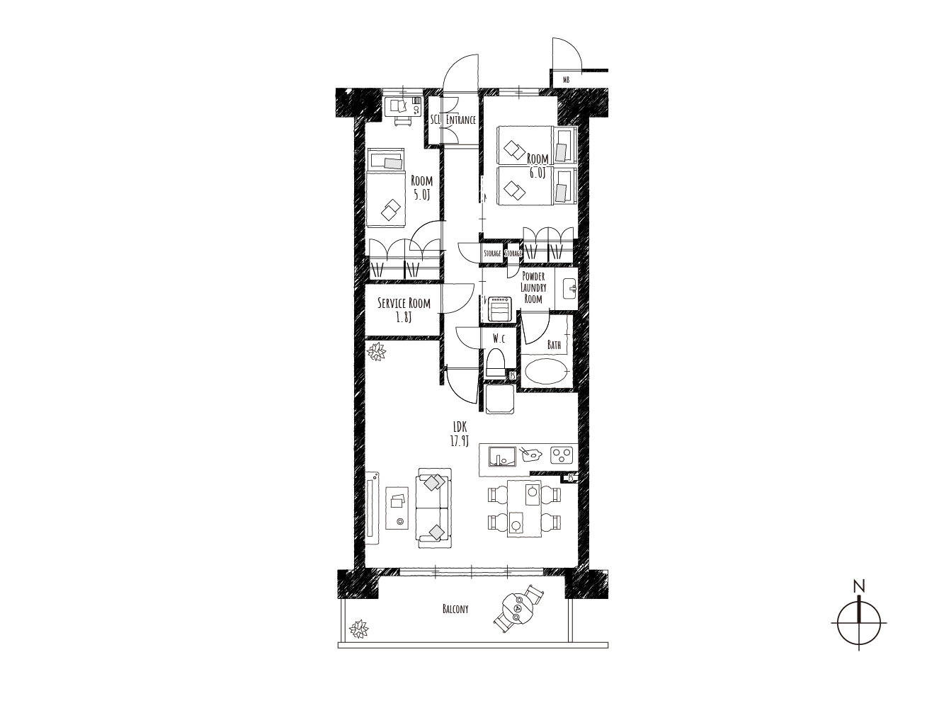 ■LDK約17.9帖に加え、約1.8帖の納戸付きで収納も充実。