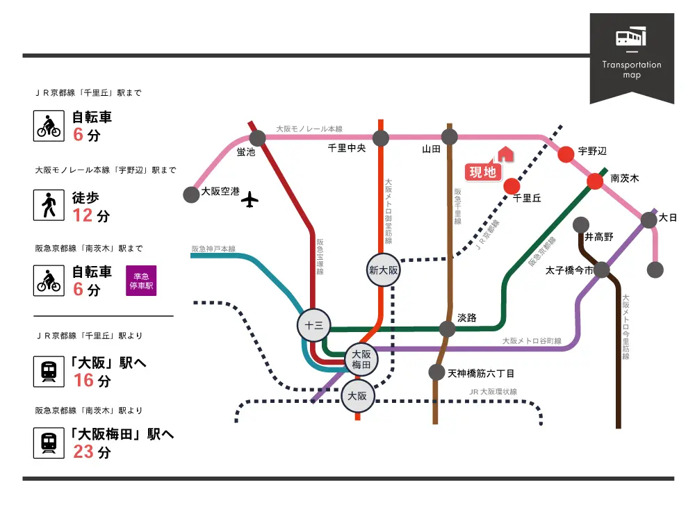 | その他交通 | 大阪モノレール本線「宇野辺」駅 徒歩12分(900m) 阪急京都線「南茨木」駅 自転車6分(1500m) |