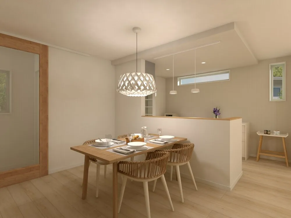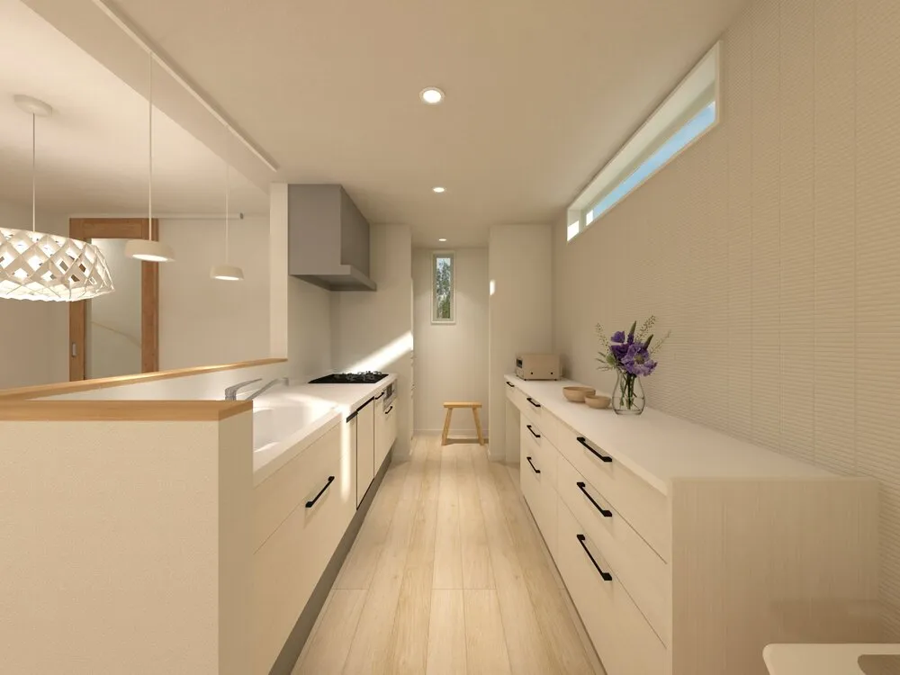 ・キッチン上部は下がり天井で空間のメリハリを演出
