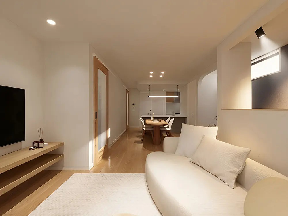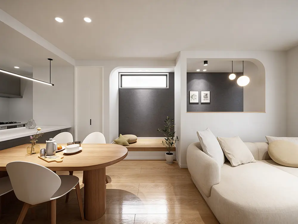 ・キッチン上部は折り下げ天井で空間の奥行きを演出