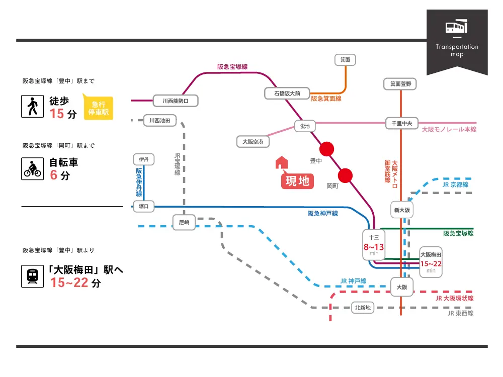 | 主要交通 | 阪急宝塚線「豊中」駅 徒歩15分(1200m) |