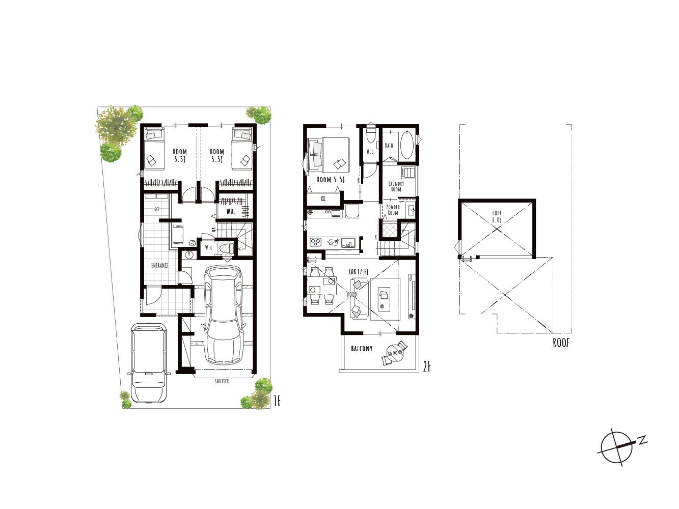 ・角地を活かした吹抜けや駐車2台もOK!自由設計で理想の間取りを実現
