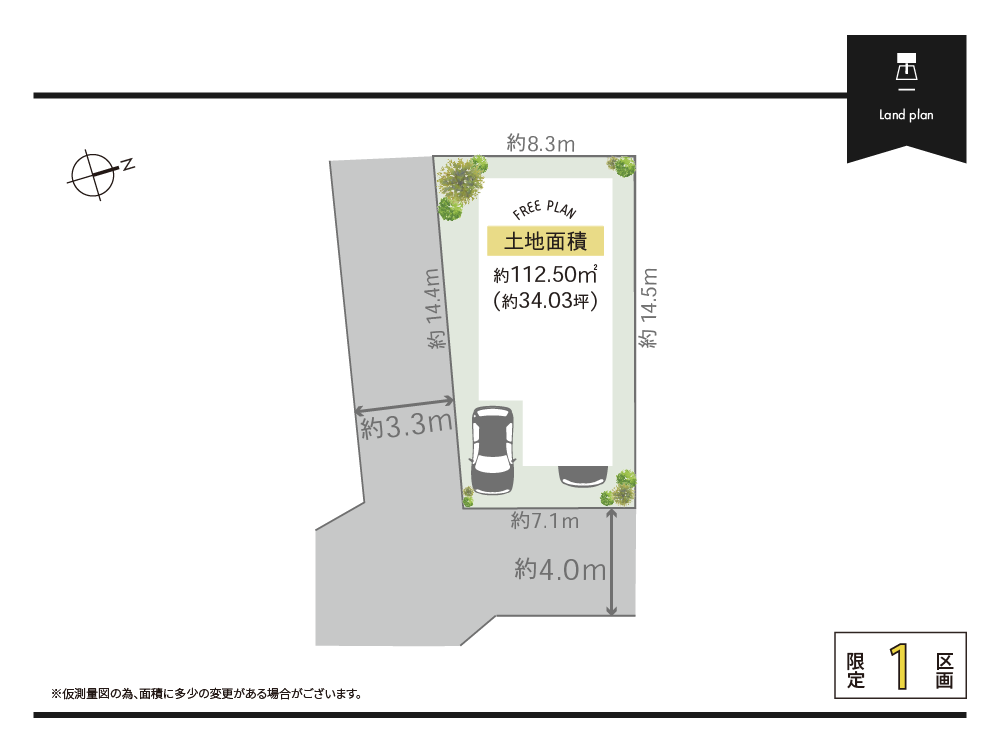 | 建築条件付き | 本物件は建築条件付売土地です。本物件の売主と買主は、土地の売買契約の締結後2ヶ月以内に建物の工事請負契約を締結する。この期日までに両者が工事請負契約の内容に合意できないときには、本契約は白紙解約することとし、売主が買主より受領済みの金銭は速やかに返還するものとする。 |