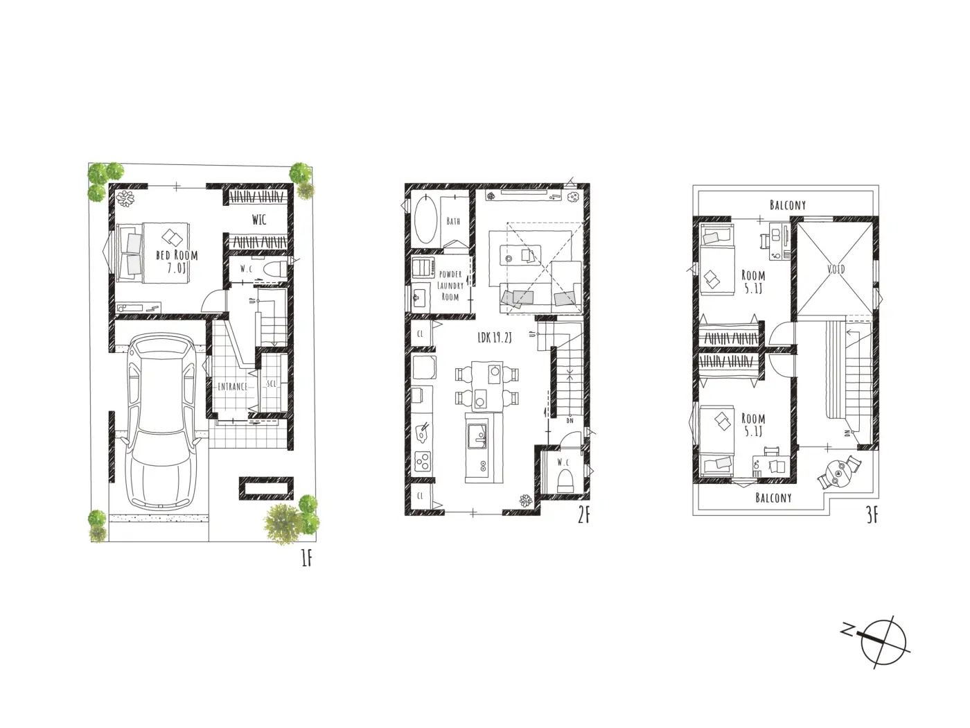 ・吹抜けや2階水廻りなど間取りの自由度◎