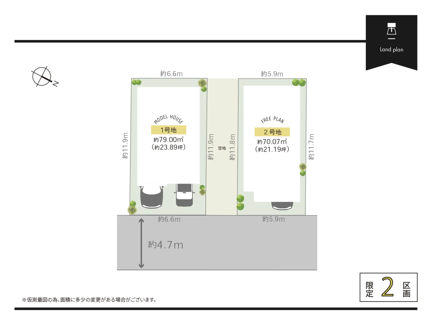 | 敷地面積 | 2号地/70.07㎡(21.19坪) |