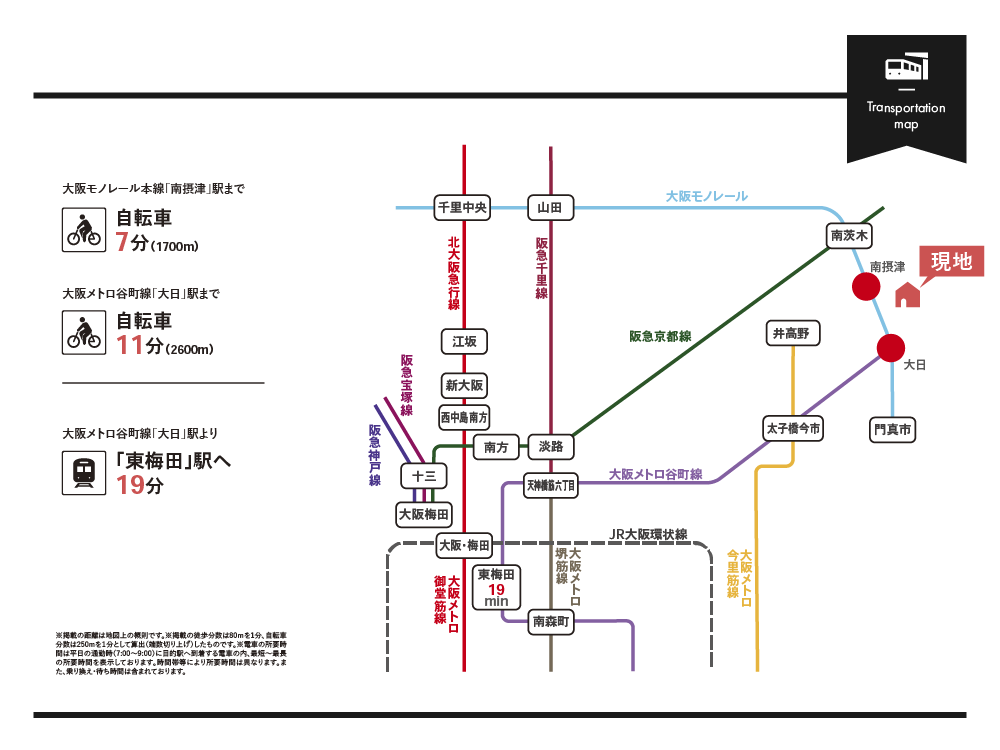 | その他交通 | 大阪メトロ谷町線「大日」駅 自転車11分(2600m ) |