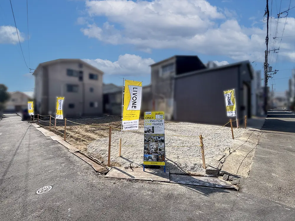 全2区画で2階建て可能な、広々間口のフリープラン用地です。学校やスーパー、ドラッグストアなどが徒歩圏内にあり、家族みんなにうれしい立地です。休日はイオンモール伊丹でお買い物や映画鑑賞も楽しめます♪