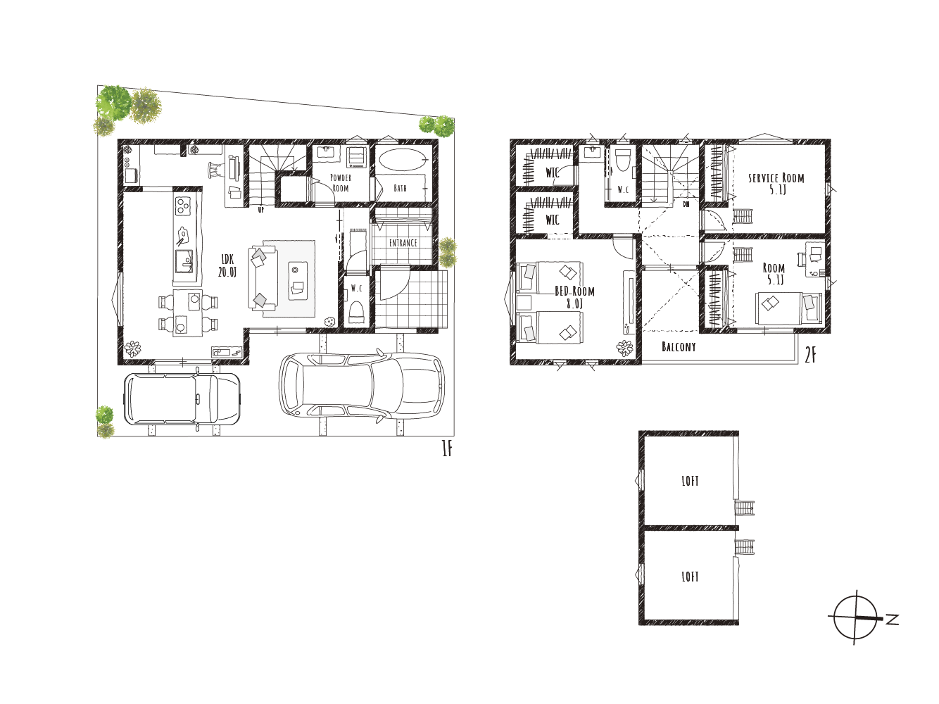 ・吹抜けや2階水廻り、畳コーナーやロフトなど、様々なプランが可能♪