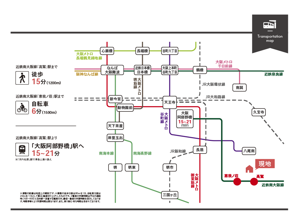 | その他交通 | 近鉄南大阪線「恵我ノ荘」駅 自転車6分(1500m) |