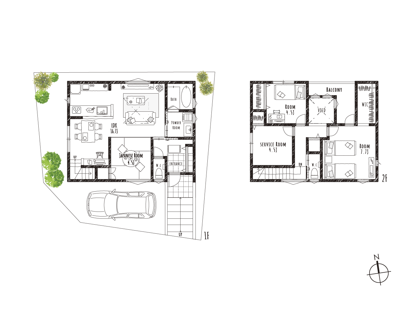 間口の広さを活かし、吹抜けや2階水廻りなど、