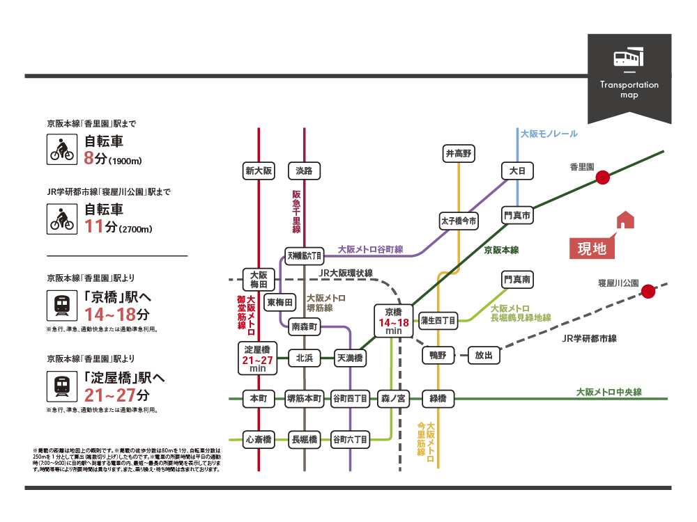 | 主要交通 | 京阪本線「香里園」駅 自転車8分(1900m) |