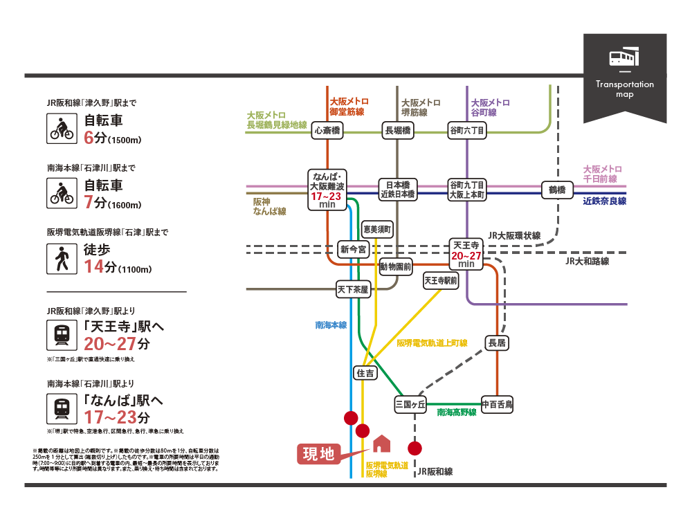 | その他交通 | 南海本線「石津川」駅 自転車7分(1600m) 阪堺電気軌道阪堺線「石津」駅 徒歩14分(1100m) |