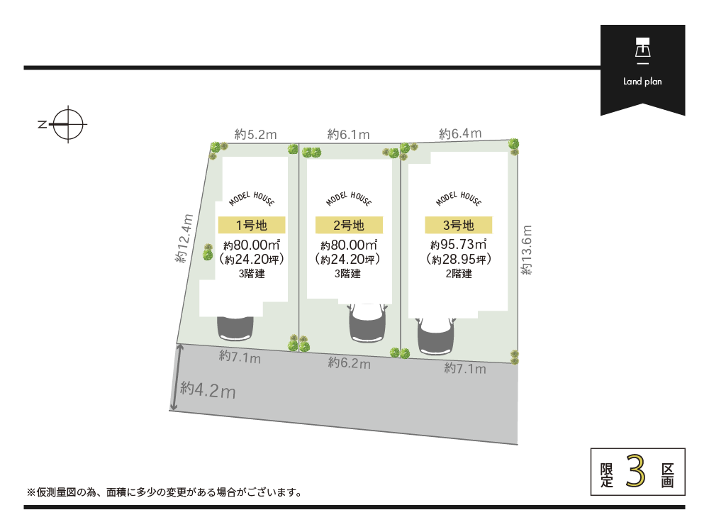 | 敷地面積 | 1,2号地/80.00㎡(24.20坪) |
