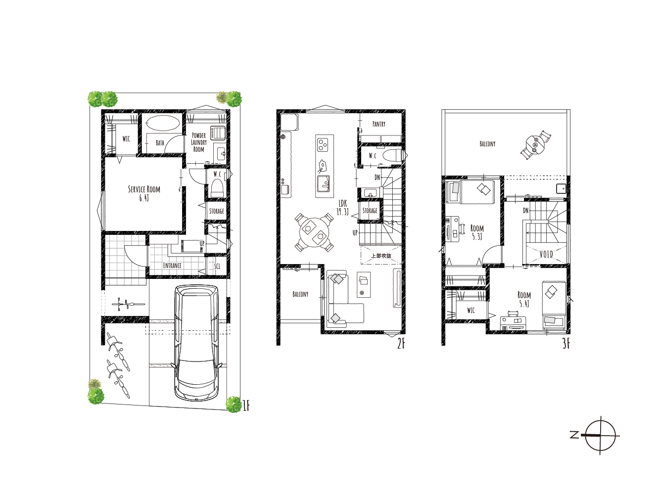 | 間取り | 1号地/3LDK+S 2号地/2LDK+S |