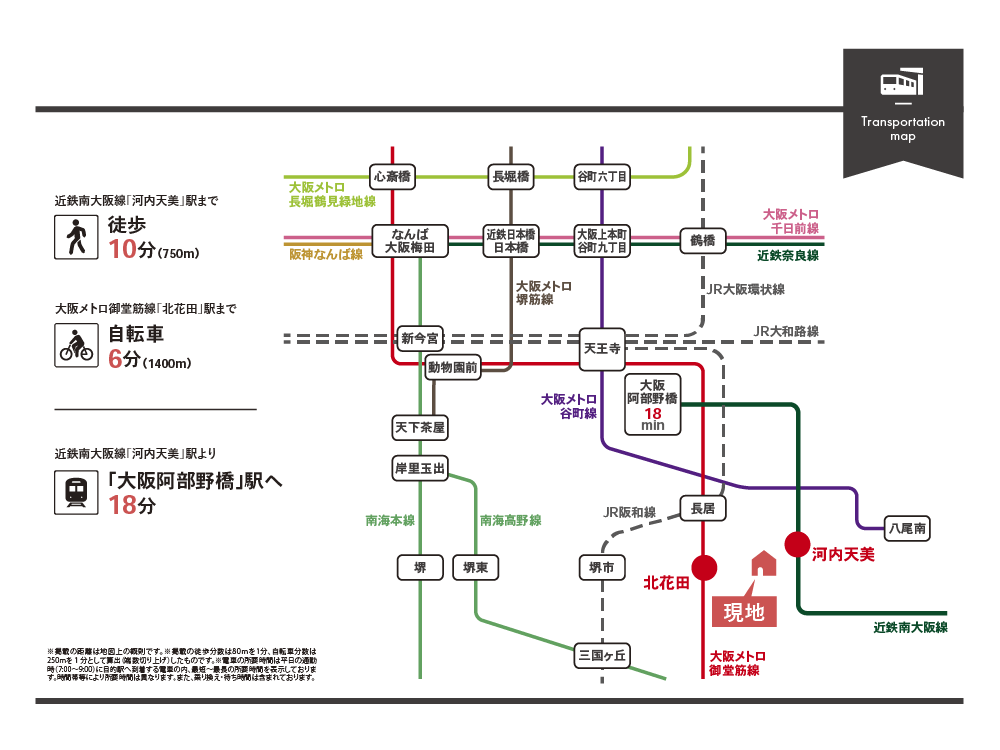 主要交通 近鉄南大阪線「河内天美」駅 徒歩10分(750m)
