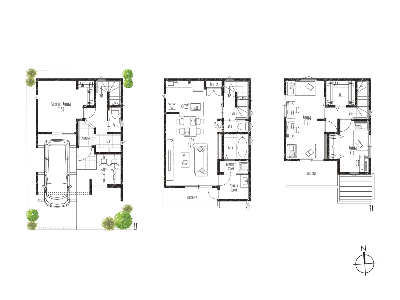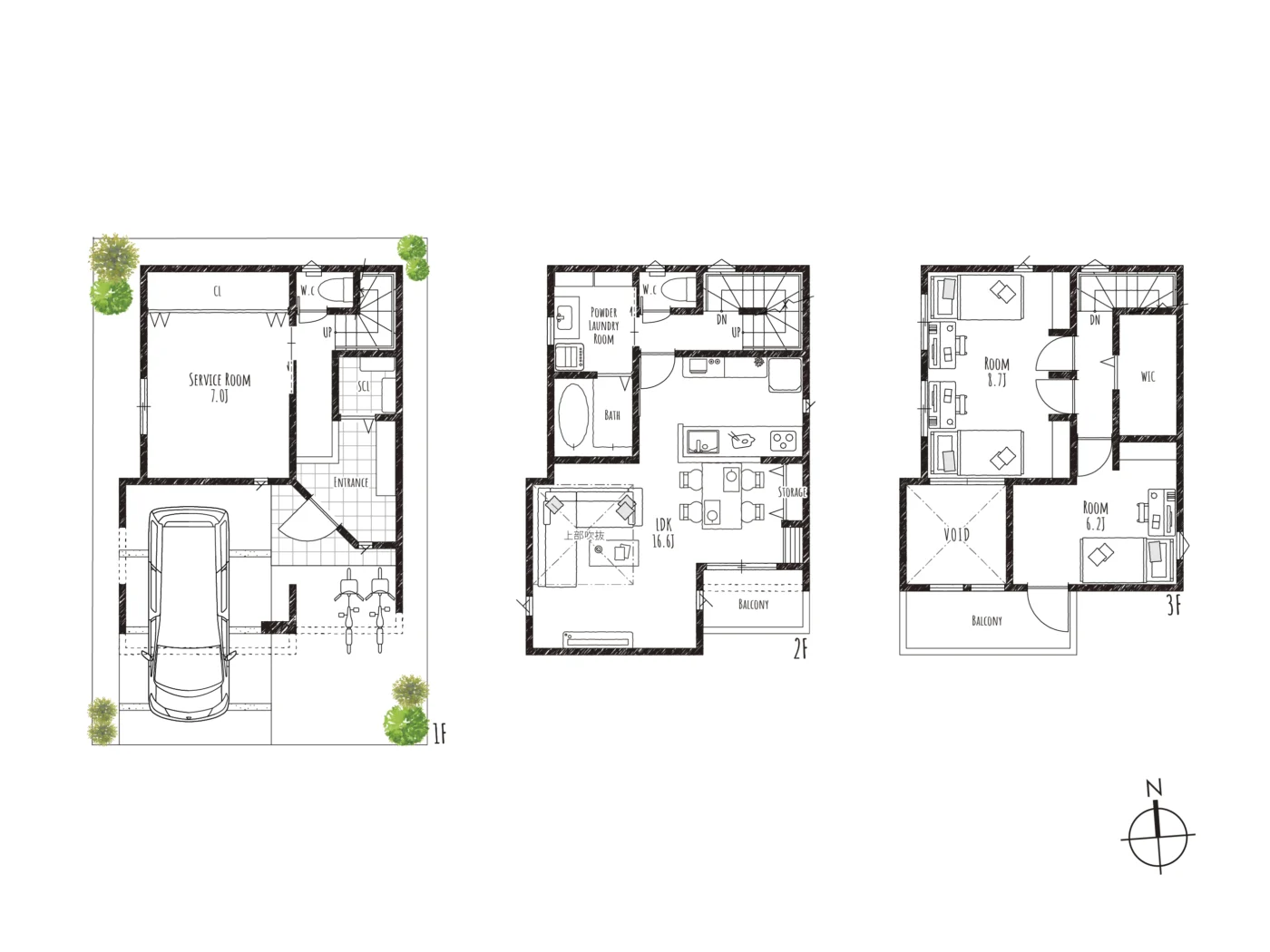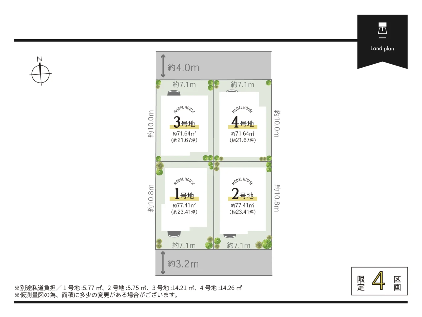 敷地面積 1,2号地/77.41㎡(23.41坪)