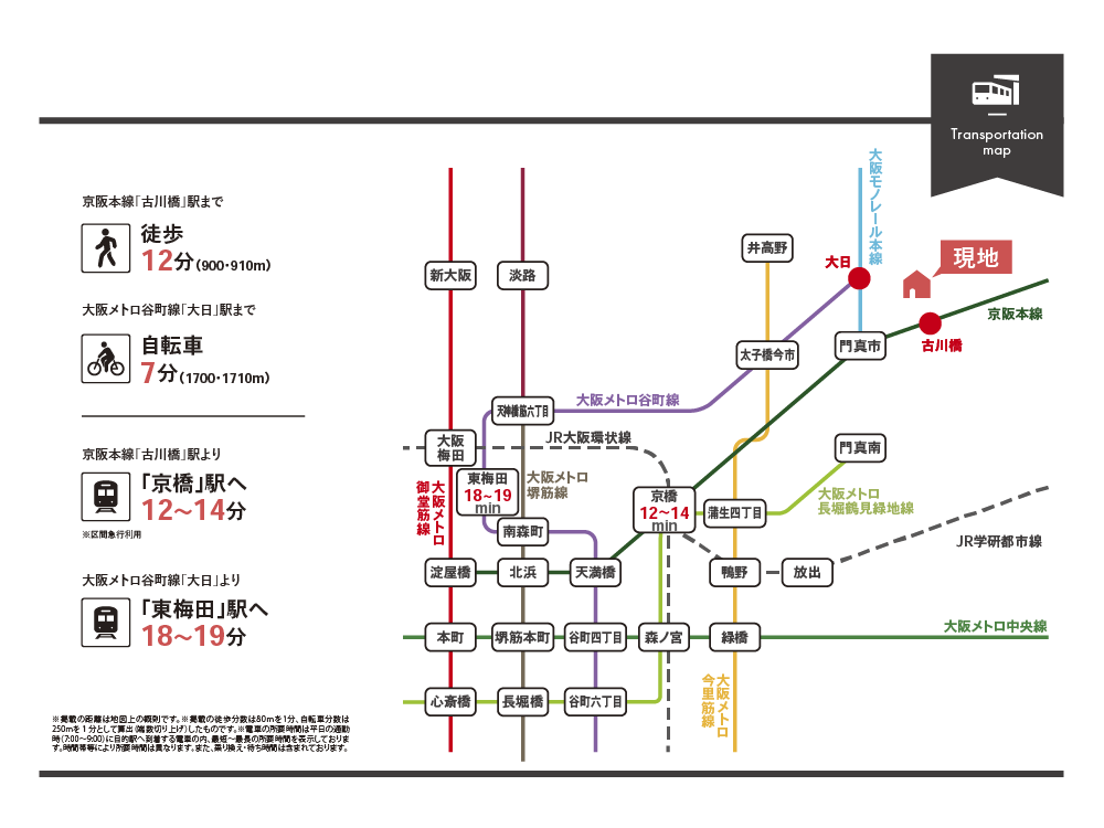 主要交通 京阪本線「古川橋」駅 徒歩12分(900・910m)