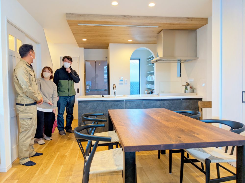 モデルハウスがとても素敵だったところです。以前の住まいがマンションということもあり、戸建てにしかできない自由な設計を取り入れたいという想いが強かったので、デザイン性や機能性が良いところに惹かれました。特に吹抜けのお家が良くて、家を建てるなら絶対取り入れたいと思い、食い入るように見ていましたね。たくさんのモデルハウスに磯田さんが連れて行ってくれて、様々なテイストのお家を見ることができたのもよかったです。磯田さんがここまで親切にしてくれなかったらちょっと…て断っていたかもしれません(笑)