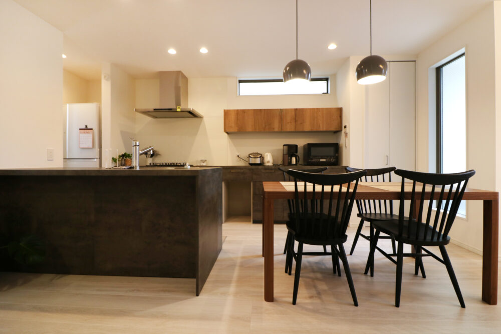 最初から考えられた家に住めるのが、すごく楽でよかったなと。家を一から作るのって大変そうだし、あまり考えていなかったので。家具付きのお家だったので、ダイニングテーブルの色も選ばせてもらいましたね。最初は統一した方がかっこいいのかなと思って黒色にしていましたが、親から黒色は料理がおいしく見えないかも?と言ってもらったのもあり、自分が使いやすいと思うこの色にしました。