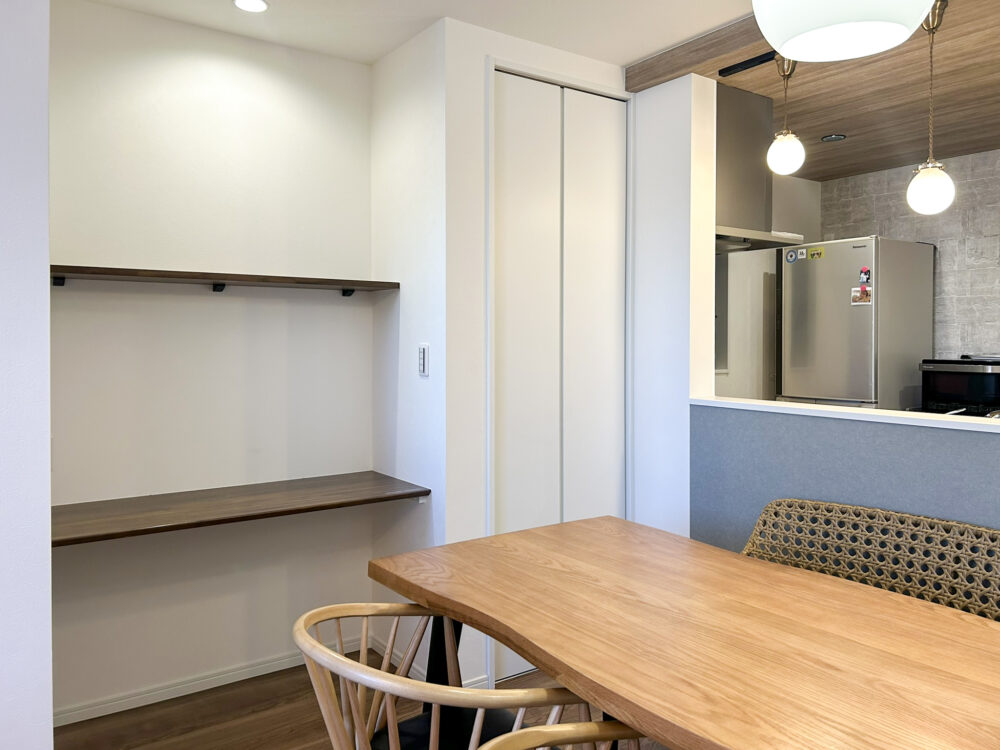 ダイニング横に設けたスタディコーナー。将来お子様の勉強スペースに。