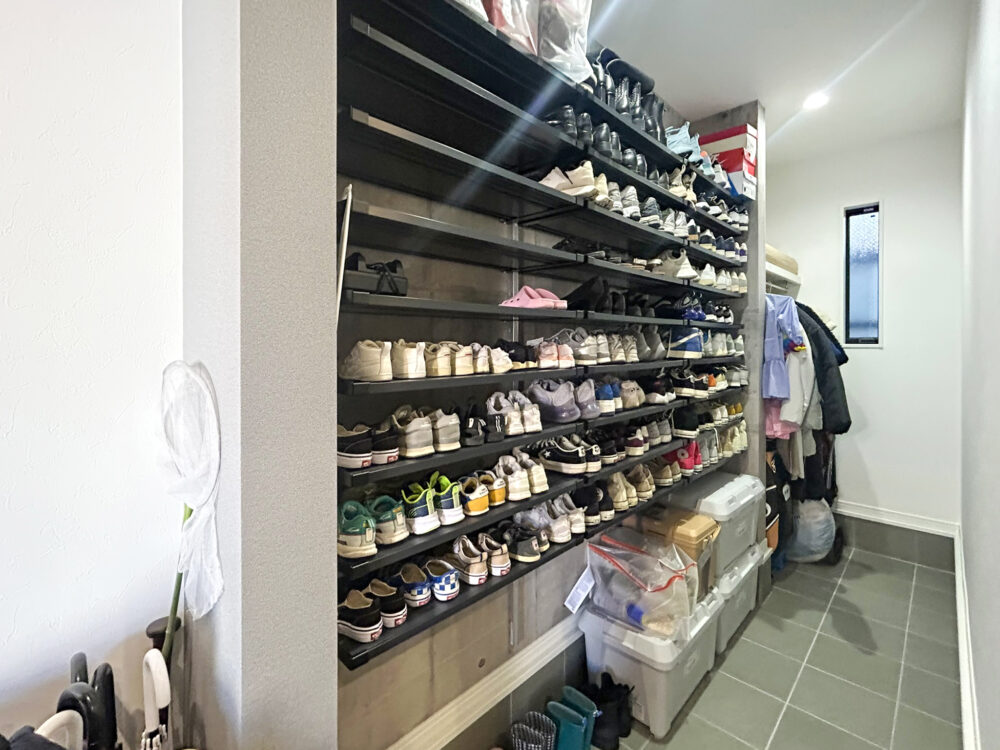 靴や荷物をたくさん収納できるシューズクローゼット。
