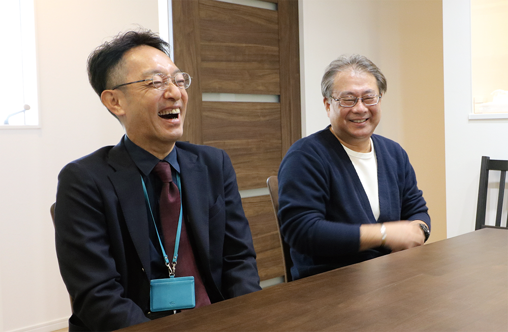最初に西山さんにお会いして、価格やお家についての説明をしていただいた際に、私たちのことを考えて発言してくれてるなあと感じました。契約後も「大工さんと連携しながらしっかり工事を進めていきます!建築中も工事の状況等をお声がけさせていただきますね。」と言って下さり安心感がありました。設計の國近さんには、かなり無茶なことを言いましたね。「気になることはなんでも言ってください!」と言って下さったので、言いたいことはなんでも言わせていただきました(笑)。真面目だけど、大胆な設計をしてくれるなあという印象を受けました。