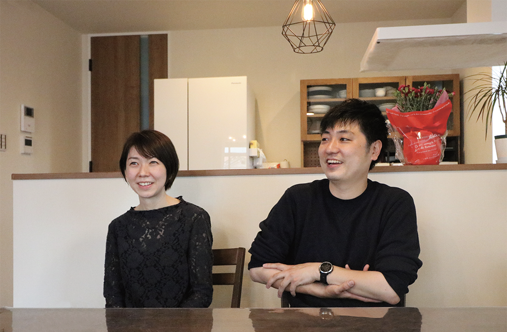 元々はマンションに住んでいたのですが、子供たちが大きくなってきて手狭に感じてきたのと、一戸建ての方が子供たちにもお家を残せるのかなあと思って探し始めたのがきっかけです。エイワハウジングさんに相談しに来る前にも、他社さんで何件もお家を見に行きましたね。でも、建物の雰囲気で良いなあと思う会社が無かったんです。その時、エイワハウジングさんで今のお家を建てることになる土地を見つけて、見た瞬間に直感でここが良いなあと思いました。その後、ネットで問い合わせをしたら私たち以外にも何件か問い合わせが入ってると聞いて、そこからは競争みたいな感じでした(笑)。