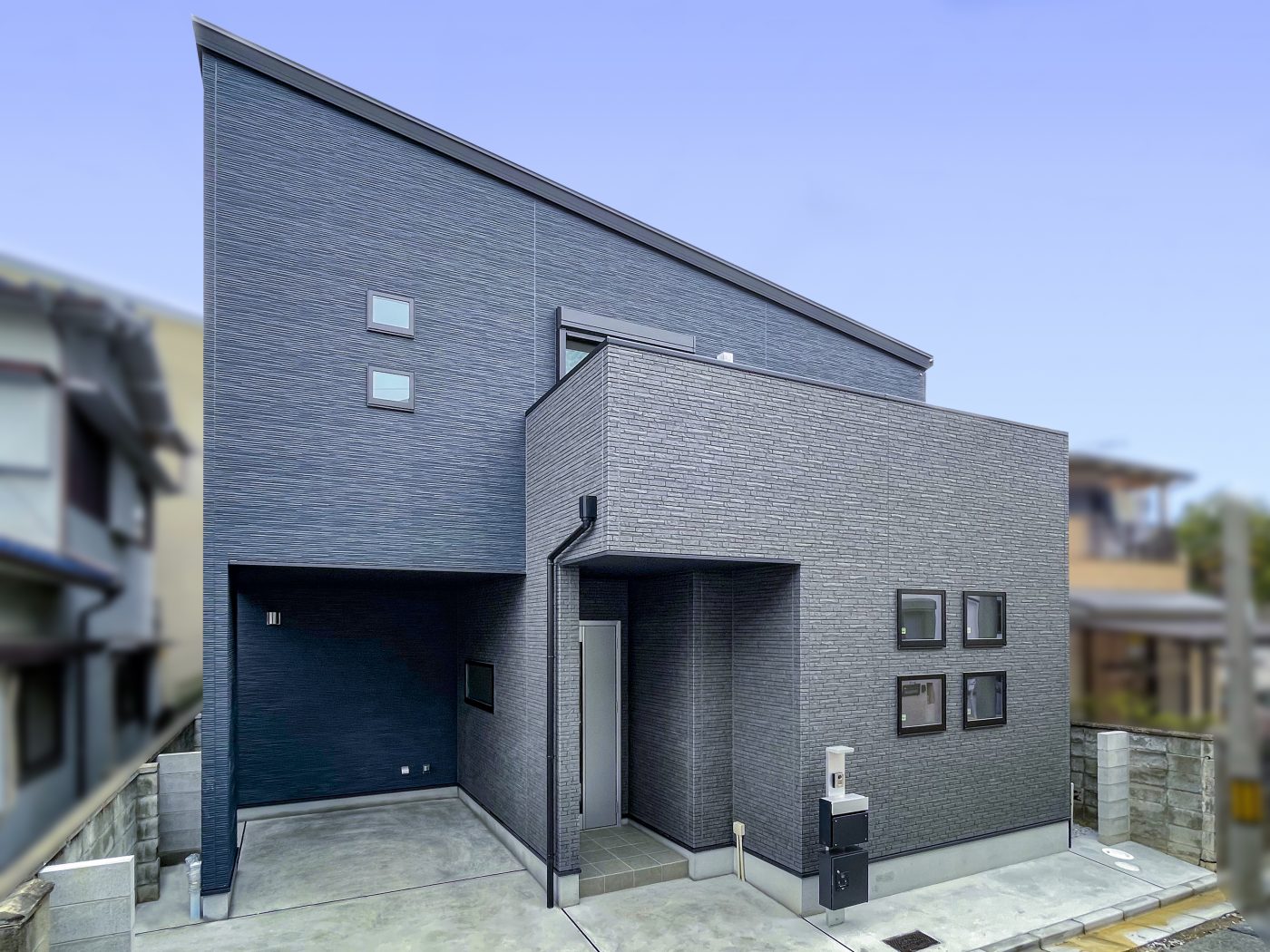 ネイビーとブラックで統一されたモダンな外観。