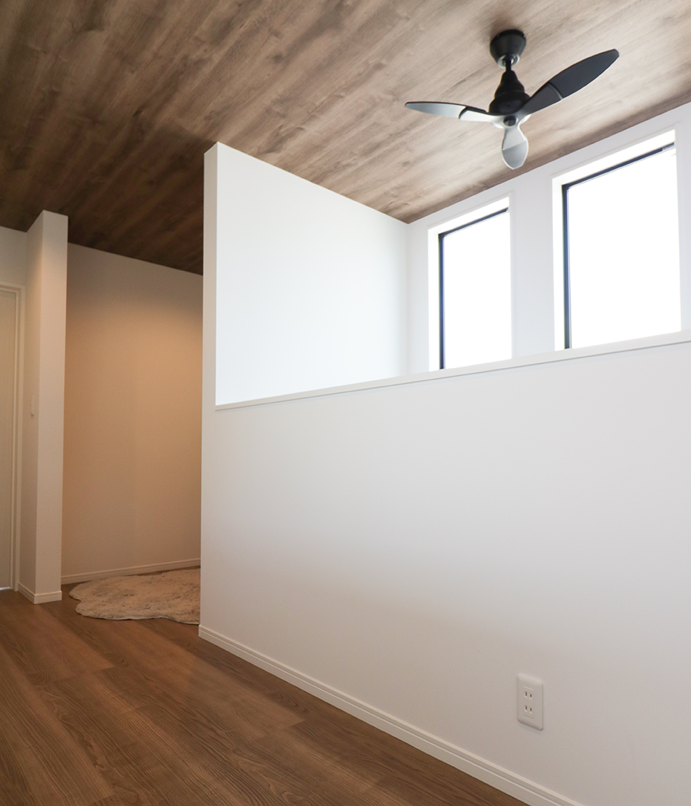 3Fホールに設けたフリースペース。下地補強を入れているので、間仕切り壁やクローゼット棚を取り付ければ、書斎を設けることも可能です。