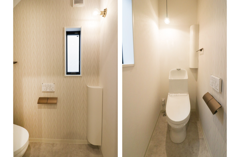 1F2F共にクロス・照明・紙巻き器をこだわったトイレ。