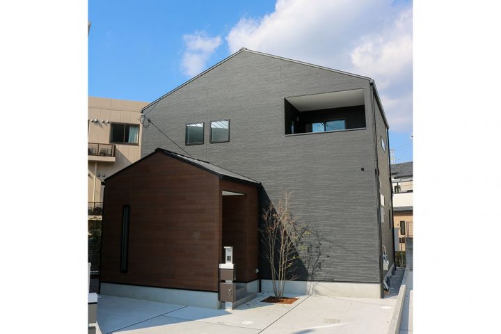 三角屋根にアクセントの木目が目を引く外観に、四季を楽しめるシンボルツリー。ナチュラルオークの床材にネイビーブルーのドアで引き締め、温かみのある家具やインテリアを取り入れた、奇をてらわない心地よいお家です。敷地を最大限に活かし、LDKの延長線上設けたウッドデッキは、空間に広がりと開放感をもたらします。空間だけではなく、2WAYの玄関や洗面室、将来間仕切りなど、ライフスタイルの変化による柔軟さや暮らしやすさも考えプランニングしました。